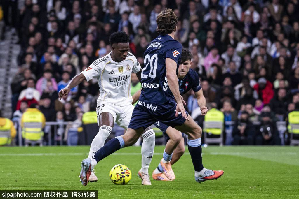 第45分钟,楚阿梅尼长传,维尼修斯推射被门将拉杜扑出。上半场结束,皇马0-0塞尔塔。